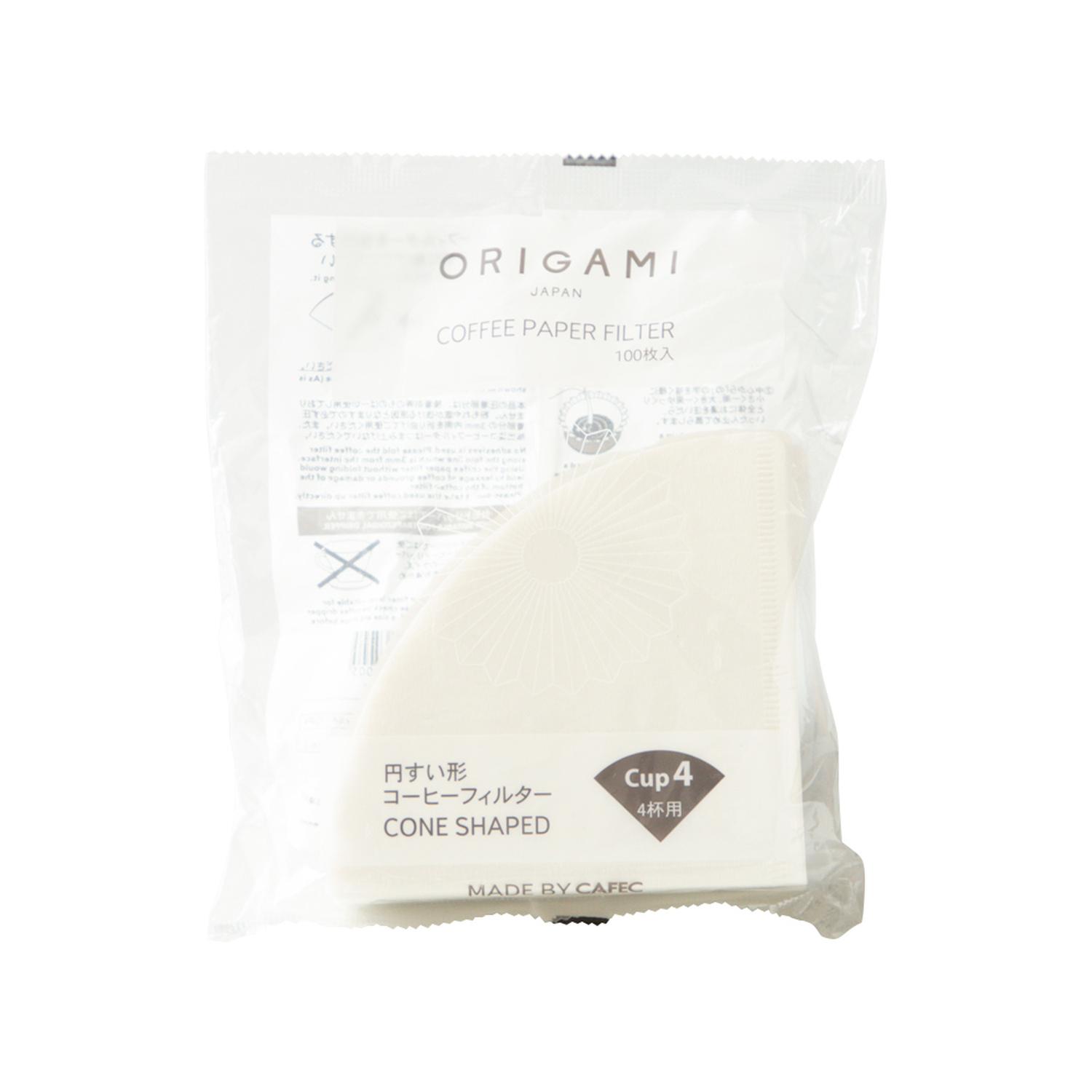 100 ORIGAMI paper filters for size M (2-4 cups) drippers. Cone-shaped filters provide proper coffee extraction and clean brew without coffee particles, yet with full flavour.